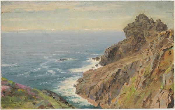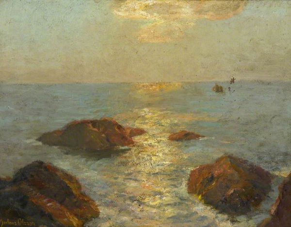 Fujishima Takeji painted this “Sunlit Landscape of Cape Shio” with oils, and I am struck by how the brushstrokes, laid down with a kind of calm certainty, really capture a transient moment. The color palette is restrained, almost monochromatic, which lends the scene a sense of serene timelessness. Looking at the surface, you can see the texture of the paint. It’s not overly thick, but there’s a clear layering that gives the image depth. See how the sun, rendered as a soft, diffused light, seems to dissolve into the sky, and how this contrasts with the solid, earthy tones of the cliffs. The whole scene vibrates with a gentle energy. It’s especially visible in the little waves! You can tell he was trying to capture the light just so. I’m reminded of Corot and the way he painted landscapes. Both artists share a knack for finding the extraordinary in the ordinary. Takeji's work is an invitation to slow down and observe the subtle beauty that surrounds us.
