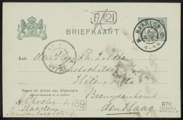This is a briefkaart, or postcard, sent by Max Liebermann to Jan Veth in 1931. At the top left, we see a coat of arms, a symbol deeply rooted in heraldic tradition, representing nobility, lineage, and institutional authority. Throughout history, variations of these emblems have appeared on medieval shields to Renaissance tapestries and modern-day logos. Here, it signifies the sender's connection to a particular place and status within society. It is fascinating to observe how these symbols have adapted. Once markers of aristocratic identity, they now appear in corporate branding, diluted and repurposed for commercial appeal. The collective memory, embedded in these images, evokes feelings of trust and establishment, consciously or subconsciously influencing our perceptions. Consider the emotional power these symbols hold—a deep, subconscious engagement that taps into our inherited cultural narratives. This card, like the symbols it bears, is part of a non-linear progression, resurfacing through time, evolving and taking on new meanings in each historical context.