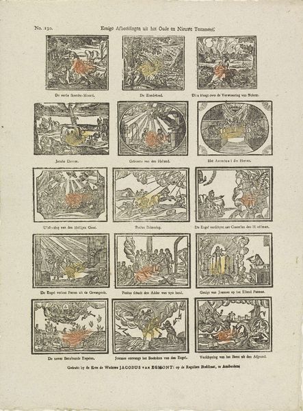 Editor: We’re looking at "Het lyden van onzen heere en heyland Jesu Christi," a print from between 1761 and 1804, currently housed in the Rijksmuseum. It’s made with engraving and the design looks like scenes from the Bible arranged in square panels. I find its old style charming. What do you see in this piece that maybe I am missing? Curator: What strikes me immediately is how this print embodies a specific cultural moment, a visual encoding of religious narratives deeply entwined with power structures of the time. Think about the accessibility of religious texts then; prints like this brought biblical stories to a wider audience. Who held the power to disseminate these stories and how did it serve their interests? Editor: So you are suggesting that these images, even religious ones, could be viewed as forms of social control? Curator: Absolutely. The selected scenes, the artistic style – even the act of mass production – were all carefully curated. Baroque style served emotional engagement to reinforce specific doctrines. Consider who created and distributed the print. What were their economic or political interests in shaping these narratives? Who was excluded or marginalized? Editor: That's a fascinating point; I hadn't thought about how much the producers' motivations shape religious art. It almost reframes it. Curator: Exactly. Looking through a lens of power and representation transforms the way we perceive seemingly straightforward religious imagery. Editor: I see now that art reflects culture but can also enforce it. Curator: Precisely! Always question the status quo. This approach to art is not just about aesthetics or religious expression; it's about understanding the intricate relationships between art, power, and society.