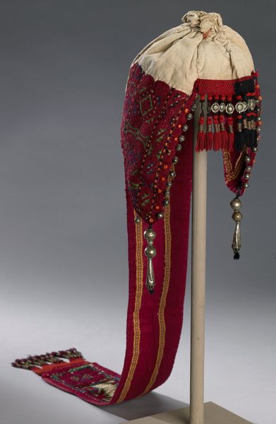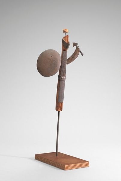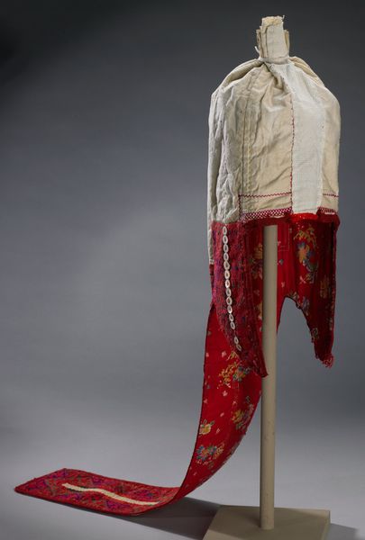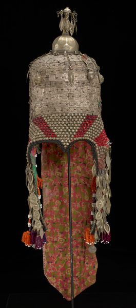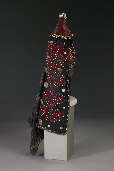 Curator: Look at this striking piece! This is Yinka Shonibare's "HIGH TEA I" created in 2015, a mixed-media sculpture incorporating textiles, assemblage, and sculpture. Editor: It’s imposing. Initially, I'm struck by the height and the stilted figure. There’s an immediate sense of precariousness in that form and I’m curious about the making involved here, not least getting those fabrics to cooperate. Curator: The figure, poised elegantly, substitutes its head with a globe—a motif Shonibare frequently uses. It suggests a dialogue about global power and post-colonialism. Notice how the Dutch wax fabrics add to this complexity. Editor: Absolutely. Thinking about the materials – the wax fabrics, the globe, and what appears to be hand-carved wooden stilts – they are loaded with specific histories of trade and labor, especially in relation to colonial legacies. The deliberate juxtaposition of these elements, the craftsmanship that shapes them, really amplifies its historical weight. Curator: The very act of partaking in "high tea" has become an emblem for British colonialism, yet the vibrant African prints complicate that narrative. It raises poignant questions about cultural appropriation, exchange, and identity. Editor: Exactly. And the height, physically placing the figure above us, makes me wonder about that positioning, the labour necessary to manufacture those stilts. Are we meant to examine that elevation or interrogate its inherent instability given that those fabrics originated elsewhere, produced by somebody? Curator: Perhaps. What do you make of its timeless quality despite the historical allusions? I find myself considering how current power structures echo throughout our contemporary society. Editor: I think that Shonibare masterfully weaves these historical threads with contemporary dialogues, leaving us contemplating the means through which histories are woven together, reminding us that these material processes always carry with them a narrative. Curator: It's certainly an intricate, multi-layered piece that keeps inviting us back into that discussion of history and craftsmanship. Editor: A perfect example of the stories our making processes hold if we decide to engage more directly with material legacies!