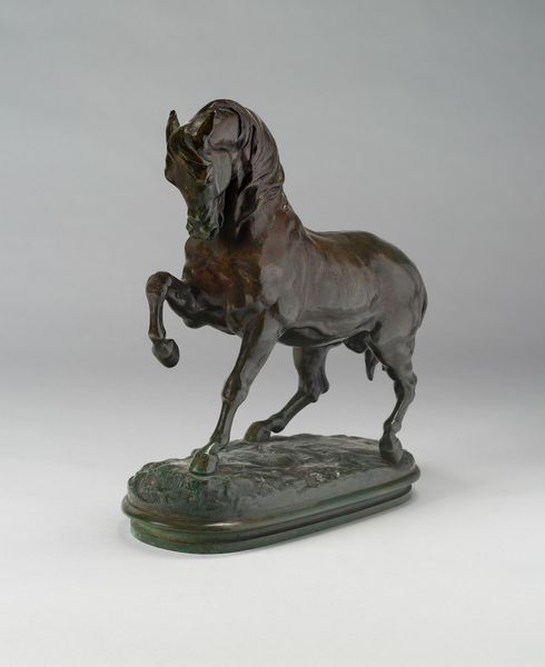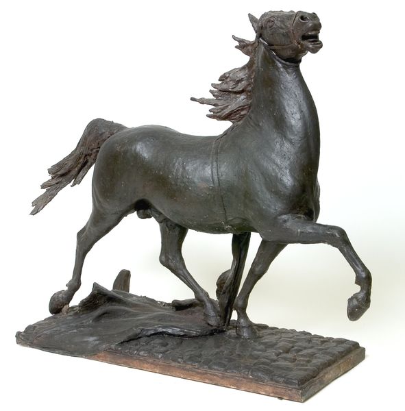 Anna Hyatt Huntington crafted this bronze sculpture, "Colt, Six Months." Huntington's work exists within a complex intersection of gender, class, and artistic expression of the early 20th century. As a woman working in sculpture—a field dominated by men—she navigated societal expectations. She chose animal subjects, perhaps as a way to assert strength and skill while avoiding the controversial gaze associated with the female figure. "Colt, Six Months" embodies this tension, and is more than just a depiction of a young horse, it suggests themes of innocence, potential, and untamed vitality. With the colt, Huntington presents an alternative narrative of power. The choice to capture a foal, rather than a stallion, evokes tenderness. It also represents a formative stage, full of promise and potential. "Colt, Six Months" captures the emotional and physical vulnerability of youth. It serves as a meditation on the narratives of growth and transformation, and prompts reflections on societal expectations.