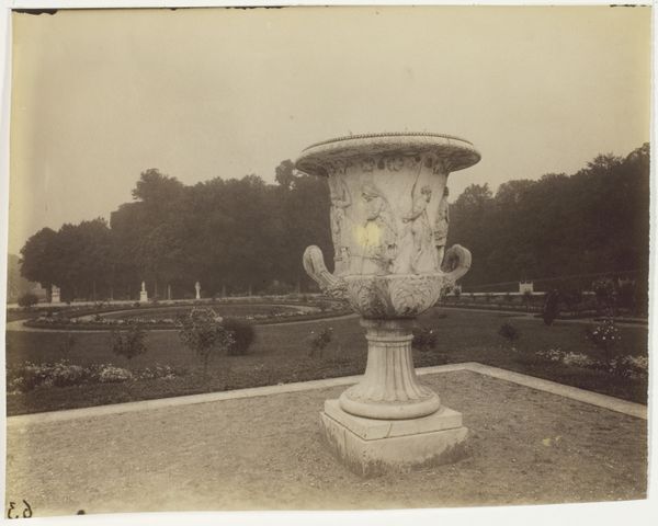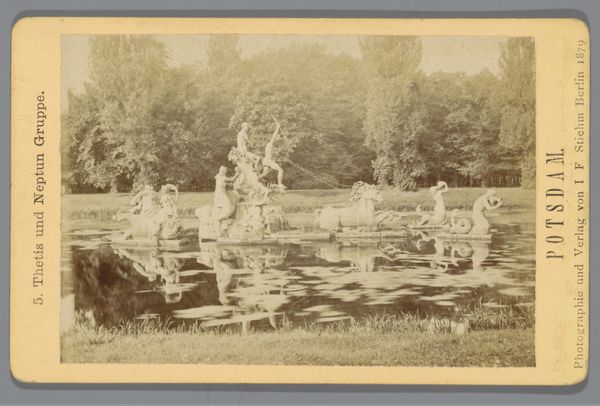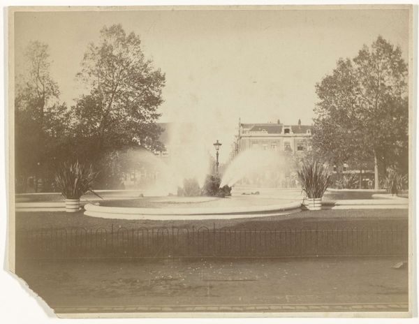 Editor: Here we have “Fontein in de tuin van slot Sanssouci, Potsdam,” believed to be from between 1855 and 1885, attributed to Siegfried Rosenthal. It appears to be a vintage photograph of a garden fountain. There's something very formal and staged about the scene. What strikes you most about this image? Curator: I’m drawn to the way this photograph encapsulates the 19th-century desire to capture and classify the world, including its constructed spaces. Notice how the garden, designed to be a space of leisure and pleasure for the elite, is framed and presented almost as a specimen. What does that tell us about the cultural values of the time? Editor: So it's less about the beauty of the fountain itself, and more about the act of documenting it, almost like a scientific study? Curator: Exactly. Think about the role of photography in the mid-19th century. It was still relatively new, and quickly becoming a tool for social documentation and even control. Images like these were circulated as postcards, reinforcing an idealized image of German cultural heritage. Does this change how you view the fountain now? Editor: Absolutely. I initially just saw a pretty scene, but now I'm considering the power dynamics at play – who gets to create and consume this image, and what message does it send? Curator: Precisely. And who is included or excluded from the garden, depicted here. It’s a window into the socio-political landscape of the era. Editor: That’s a completely different lens to view the image. I'll definitely consider the social context of images like this one going forward. Curator: That's what art history is all about - always questioning and contextualizing.