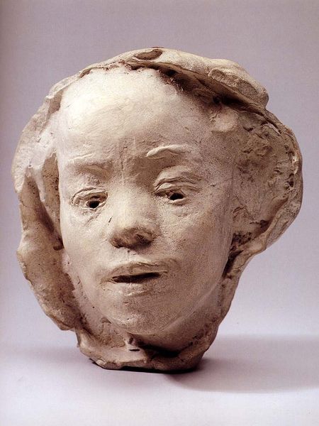 Editor: Rodin's "Mask of Hanako, the Japanese Actress," created around 1911, is quite striking. There's something about its stillness that makes it feel almost melancholic. How do you interpret this work? Curator: The stillness you observe is significant. Rodin, fascinated by Hanako's performances of ritual suicide, found in her mask not just a likeness, but an archetype of suffering. Can you see how the downward gaze and slight asymmetry contribute to a feeling of sorrow, but also, perhaps, acceptance? Editor: Yes, I see it now, the asymmetry makes it more human, more vulnerable. I hadn't thought about her performance influencing it so directly. Curator: Indeed. Consider, too, the cultural context. At the time, Japonisme, a fascination with Japanese art and culture, was prevalent in Europe. Hanako herself became a symbol of Japanese exoticism, viewed through a Western lens. Rodin's work, in this context, almost attempts to capture the soul of that exoticism, filtered through his own artistic sensibility. Editor: That makes so much sense. It's like he's trying to capture something beyond just her face. Are there other symbolic elements at play, do you think? Curator: The very act of creating a mask is inherently symbolic. Masks conceal and reveal simultaneously. In this case, the mask allows Rodin to explore universal themes of mortality and emotional intensity, all channeled through the specific figure of Hanako. He isn’t just representing Hanako; he’s also presenting an idealized version of Japanese stoicism, or rather, his interpretation of it. What does that juxtaposition evoke for you? Editor: I suppose it prompts me to question how much of what I'm seeing is truly Hanako, and how much is Rodin's projection, or even European cultural fantasies about Japan. It makes you think about layers of meaning! Curator: Precisely! And that, I believe, is where the power of this piece lies. It's a conversation between cultures, mediated by the artist’s vision and the enduring symbolism of the human face. Editor: This has completely changed how I see this sculpture! I’ll never look at it the same way again.