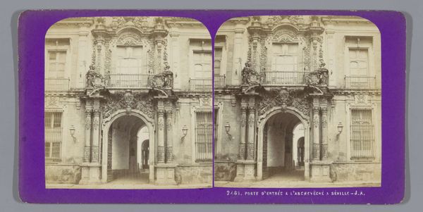 Jean Andrieu captured this photograph of the Puerta de Triana in Seville using the stereoscope technique. The visual experience is dominated by the symmetrical composition and the monumental structure of the gate. The sepia tones evoke a sense of history and permanence. The stereoscopic format presents two slightly offset images, creating an illusion of depth when viewed through a stereoscope. This technique reflects a fascination with perception and representation in the 19th century. The gate itself serves as a powerful signifier of transition and entry, framed by classical architectural elements. Andrieu’s choice to capture the gate head-on emphasizes its imposing presence. The photograph functions not merely as a record but as an artistic interpretation of space and form. The interplay of light and shadow enhances the texture of the stone, underscoring its solidity and the weight of history it carries. As viewers, we are invited to consider the cultural and philosophical implications of borders, access, and the way we perceive the world through constructed environments.