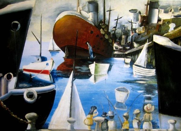 Raoul Dufy’s painting shows a regatta at Cowes. The canvas is awash in a spectrum of blues, establishing a vibrant yet tranquil atmosphere. The composition is structured around the interplay of vertical masts and the dynamic angles of sails, creating a visual rhythm that mirrors the movement of the sea. Dufy employs a technique where colors define form rather than describe it, flattening the perspective and enhancing the picture's surface. Flags and sails become semiotic devices, coded with meaning that transcends their mere depiction. The brushstrokes are loose and expressive, denying the mimetic function of painting to convey the sensations and impressions of the event, rather than its precise reality. The painting challenges traditional representational values. Instead, it seeks to capture the essence of the regatta through a synthesis of color and form. This approach reflects a shift toward modernism, where the artwork becomes an autonomous object, engaging in a dialogue about its own construction and the nature of perception.