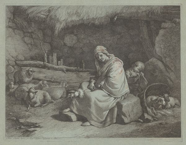 Francesco Londonio created this print, “Interior of a House,” sometime in the 18th century. It offers us a glimpse into the lives of working-class women and children, a subject not often seen in art of this period. The interior scene is dimly lit, focusing on the figures of women and children. One older woman is seated on the ground, her gaze meeting ours with a weariness that speaks to a life of labor. The image offers insight into the roles assigned to women, especially in the context of work and family. The basket of produce, combined with the children at work, suggests a narrative deeply entwined with survival and economic necessity. Rather than glorifying the pastoral, Londonio presents a subdued, intimate portrayal of daily life. Through the careful rendering of his figures and their environment, Londonio invites us to reflect on the personal and social implications of labor, gender, and survival.
