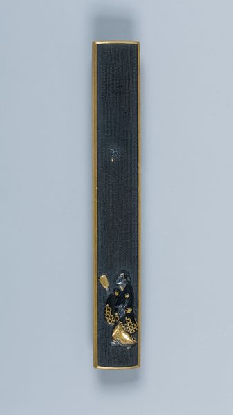 Editor: Here we have a lacquered pen box, a Qalamdan, dating roughly from 1675 to 1725. The miniature drawing is very captivating. It's so detailed. What draws your attention in this piece? Curator: I'm particularly struck by the materials and the process used to create this object. Lacquerware in this period wasn’t simply decorative; it was about production, about trade, about empire. How does the use of lacquer, a technique demanding significant labor and skill, elevate a utilitarian object like a pen box? What was the social standing of artisans trained in that medium? Editor: I hadn't considered that. So the box itself, not just the imagery, tells a story about labor and craftsmanship? Curator: Precisely. And think about the consumption of luxury items like this. Who owned it? What kind of status did owning it convey? The figures are so precisely drawn... they may have been influenced by Western depictions. The combination of Persian miniature painting and lacquering techniques is an interesting fusion in itself! Is it Persian, European, a fusion? Editor: I see what you mean. Looking closer, the details of the miniature, seemingly traditional, sit atop of layers of crafted lacquer. Could that be interpreted as tension between the high art of painting and the applied art of lacquerware? Curator: Interesting point. Absolutely. Think about the circulation of the artist’s drawings. Are we seeing mass-produced luxury, and who has access to such materials? We see these items traveling across cultural boundaries to Europe... How does this Qalamdan represent intercultural exchange in the making and trading of art during this period? Editor: That changes my perception of it entirely! I initially saw it as just a pretty box, but now I recognize it represents global networks and material practices. Curator: Indeed. By focusing on the materials, processes, and social contexts, we see a far richer and more complex story unfold.