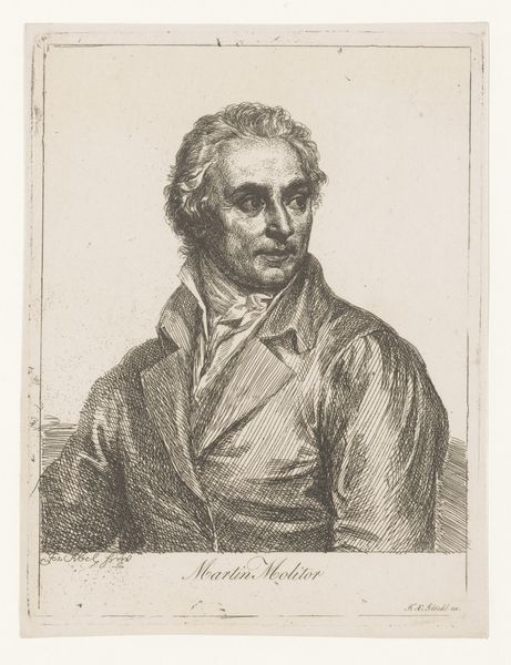 Curator: Before us is "Portret van Josef Klieber," an engraving from 1837 by Franz Xaver Stöber, currently held at the Rijksmuseum. Editor: It’s strikingly somber, almost severe. The limited tonal range amplifies the subject’s reserved demeanor. What was the common practice for printmaking at that time? Curator: Stöber's use of engraving as a reproductive method allows for precise detail and clarity, facilitating the broad distribution of portraiture. Think about the implications: printmaking democratizes image dissemination and fosters public visual culture. The etching reveals the intricate lines, shadowing and texture to compose an emotional reality for a modern bourgeois sensibility. Editor: Indeed. I'm captivated by the way the dense network of engraved lines coalesces to delineate form. What does this work contribute to our understanding of the artistic and cultural labor conditions of the era? I wonder, were reproductive prints held to different artistic standards? Curator: One must consider the conventions of portraiture itself. How does Stöber position Klieber within the visual rhetoric of accomplishment? Editor: Ah, so it seems less focused on intimate likeness and more toward societal presentation of status. Yet this also showcases a clear movement towards mass replication and reproducibility. It presents a clear reflection of economic values—what did images do to create and circulate power within the community? Curator: Precisely. His steady, collected gaze indicates an internal focus – the epitome of romantic individualism of the period. His dark jacket adds contrast while focusing attention on Klieber's facial details, inviting closer scrutiny. The light draws one to inspect his knowing glance, and the subtle smirk in the corners of his mouth. Editor: Viewing it through this lens helps reframe what could seem a plain reproduction. Considering it instead as a record of evolving class structure with evolving technology adds layers of complexity. Thank you! Curator: An insightful reminder of its lasting artistic and social relevance, it would seem.