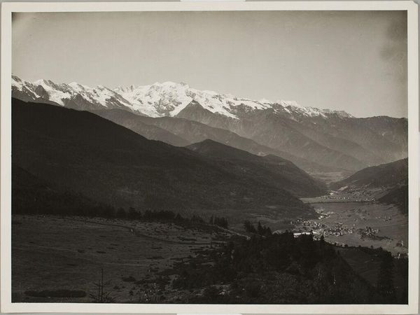 Editor: This gelatin-silver print, titled "Train Tracks - Transportation," was created by Robert Frank sometime between 1942 and 1946. I’m struck by how bleak yet beautiful the scene is. The train tracks receding into the distance create a real sense of isolation. What stands out to you? Curator: The photograph is indeed striking. Thinking historically, the post-war period saw a rise in existentialist thought. This image speaks to the alienation and uncertainty of the era, echoing the feeling that traditional paths, like those railways, might lead nowhere. The choice of a train as the image's theme reinforces the role of industry as one that shapes landscape and influences the everyday lives of citizens and national identity. Where do those lines of transport bring these citizens and products? Is there promise or simply expectation? Editor: That makes me consider the broader cultural implications, absolutely. The seemingly endless track against the backdrop of the distant mountains... Were there specific political factors influencing photography like this at the time? Curator: Absolutely. Post-war photography often grappled with questions of national identity and the individual’s place within it. Many photographers moved away from the heroic imagery used in wartime propaganda and leaned into realism, sometimes bordering on the melancholic, and sought ways to display an earnest and realistic portrayal of the times. The stark contrast of this print could also allude to social divisions and inequalities, the sense of being on a track predetermined by forces beyond one’s control. Editor: That's a completely different reading than I had initially. Now it feels much more charged, politically and socially. Curator: The public display of art – particularly photography – is always a political act. Frank’s work and its reception contributes to a dialogue about whose stories get told and how a nation sees itself. I wonder, reflecting on our discussion, does the piece still feel bleak to you? Editor: Yes, but it's a more informed bleakness. It’s now a reflection on societal anxieties, rather than just a surface impression of a desolate landscape. I really appreciate that historical context.