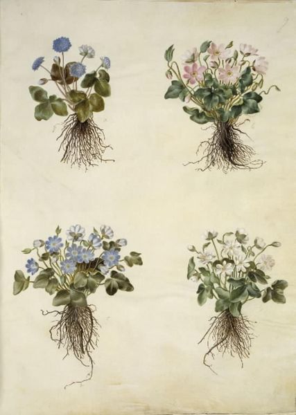 Editor: This is "Erodium chamaedryoides," a watercolor and print by François Hubert, dating back to 1787-1788. It’s a botanical illustration with incredible detail. I’m curious about the style; it feels both scientific and artistic at the same time. How do you interpret this work, especially considering its historical context? Curator: The seeming contradiction is actually the key! Botanical illustrations like this served a crucial role in the late 18th century. They weren't just pretty pictures. Think of the Enlightenment emphasis on cataloging and understanding the natural world. This image exists within a framework of scientific exploration and expanding empires. What kind of power do you think such detailed representations might give to the cultures that can create or purchase it? Editor: That’s fascinating! So, this level of detail was more than just artistic expression; it was about documenting and classifying. So is it about asserting control over nature through knowledge? Curator: Precisely. Consider where this piece was created and its potential audience. Who had the resources to commission or create such detailed work? It was part of a broader European project of understanding, and, inevitably, controlling, the natural world, and botanical art often reflects this dynamic. How does understanding that context change your perception of the artwork itself? Editor: It makes me see it as less of an innocent observation of nature and more as a tool of exploration and perhaps even exploitation. It adds a layer of complexity to the image. I thought that academic art only applied to figurative or allegorical depictions. I see now it describes the nature of the drawing being objective above all. Curator: Absolutely. And that "objectivity," we understand now, is always framed by a particular worldview and set of interests. Hopefully this conversation opens avenues to reconsider canonical definitions. Editor: This has been a real eye-opener! I'll definitely look at botanical illustrations differently from now on. Thanks.