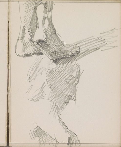 Curator: This is John Singer Sargent's "Study for Second Angel from Left, 'Israel and the Law,' Boston Public Library." It’s currently held here at the Harvard Art Museums. Editor: It's a dynamic charcoal sketch; the figure's posture and the starkness of the shading create a sense of tension. Curator: Indeed. Sargent was preparing for a larger mural. Considering his process, the physicality of charcoal seems a fitting choice for such a monumental project. Editor: Absolutely. And the figure's obscured face and the implied weight of the object they are holding… I immediately think about the weight of law and its impact on identity and power. Curator: It's fascinating to see how Sargent uses a study like this to work through the composition and the emotional implications. Editor: Yes, I find it compelling how a simple sketch can evoke complex themes about justice and the human condition. Curator: Sargent's process reveals a blend of the practical and the profound. Editor: A truly insightful piece. It prompts questions about the role of law in shaping society.