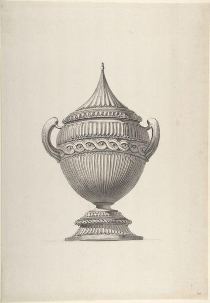 Editor: Here we have Françoise Bouzonnet's "Vase with Scales and Lobes" from 1657, an engraving on metal. It looks so precise. What can you tell me about it? Curator: Well, on the surface, this appears to be a straightforward representation of an object. But let’s consider the function of ornament during the Baroque period. What kind of statement was the owner making through its display? Remember, this was a period deeply engaged with social hierarchies and status. Editor: I guess the vase becomes more than just a vase. Curator: Exactly! It's a declaration. Bouzonnet's engraving, by documenting such objects, participates in the circulation and perhaps even idealization of these markers of wealth. Who had access to such prints? Who could afford the actual vase? What kind of person was it meant for? Editor: So the engraving almost democratizes access, even if it's just visually. Curator: Precisely! And we need to be aware of this inherent contradiction. What message are we conveying when we are displaying it today? Should it be considered an art piece that embodies history, class and capitalism of its time? Editor: It's really amazing to think about all of that – the context, the statement, and what it all means today. I hadn't thought of it that way. Curator: Seeing art as entangled with social dynamics makes art history so much richer, doesn’t it? There's always something more to uncover.