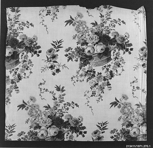 Editor: Here we have a textile "Piece," likely made of cotton, dating from around 1760 to 1780, currently held at the Metropolitan Museum of Art. The intricate floral pattern has a subdued elegance, almost like a memory. What stands out to you most? Curator: What resonates deeply with me is how this textile acts as a cultural artifact. It's more than mere decoration; the floral motif is a coded language. Do you perceive echoes of "Orientalism" in the stylized plant forms, reflecting European fascination with the East? Consider the symbolic weight of the specific floral types—might they allude to trade routes, colonial narratives, or even personal stories of the artisan and patron? Editor: I hadn't considered the trade implications so directly. I was initially drawn to the pattern itself as a purely aesthetic choice. But I can definitely see how these weren't random choices now. How did these symbols change and evolve over time? Curator: The meaning of floral motifs, for example, can vary wildly across cultures and time periods. A rose could signify love in one era and secrecy in another. The real magic lies in decoding these shifting symbols, understanding how cultural memory is woven—literally—into the fabric of our lives. It asks us to reflect on the global exchanges and cultural appropriations embedded within a seemingly simple design. Does it complicate how you see beauty and art from the 18th Century? Editor: Absolutely! I see it now as both beautiful *and* complex, a reminder of how art embodies layers of history and cultural meaning. Thank you for broadening my perspective. Curator: And thank you for providing such a perceptive starting point, reminding me of how much richness can be held within seemingly 'simple' things.