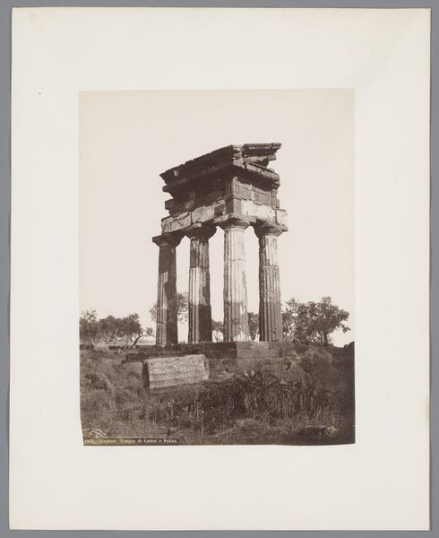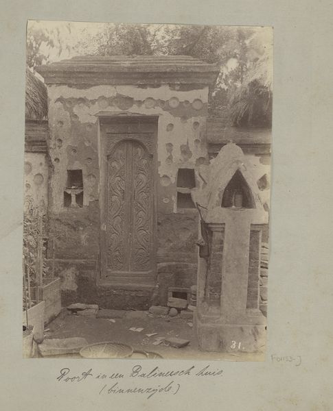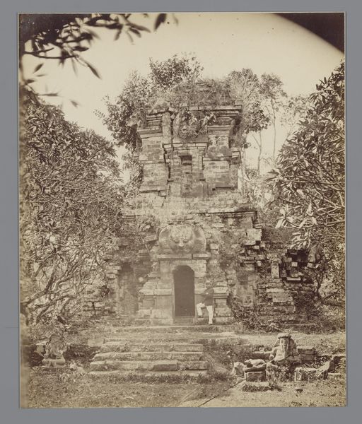 Editor: This is a print titled "Gezicht op de Chaturbhuja Tempel" by K.H. Mawal, dating back to around 1900. I'm really struck by how the architecture seems to almost emerge from the rock face itself. What's your interpretation of this image, particularly given its historical context? Curator: This photograph provides a glimpse into the colonial gaze and the representation of Indian architecture at the turn of the century. Consider the role photography played in shaping Western perceptions of the East. How do you think Mawal’s position as presumably an Indian photographer might complicate that dynamic? Editor: That's interesting. I hadn't considered that. Perhaps he's trying to capture its spiritual essence for a local audience, while also fitting into a format accessible to a Western one? Curator: Exactly. And note how the framing emphasizes the temple's stillness and monumentality. This aesthetic often served to exoticize the East but also, importantly, to categorize and document, turning lived spaces into objects for study and collection. The black and white photography flattens the complexity, making the structure itself a spectacle for the viewer, what do you think? Editor: I see what you mean. It's presented almost like an archaeological find rather than a living place of worship. I guess the print form also makes it accessible, reproducible, and able to spread these images. Curator: Precisely. These images circulated widely and influenced colonial administration as well as artistic and architectural movements in the West. Recognizing these photographs as historical documents reveals the complex power dynamics inherent in visual representations. Editor: Wow, I hadn't thought about it in terms of power dynamics. I guess I was so focused on the beauty. Now I see there’s a lot more at play. Curator: Absolutely, recognizing that tension allows us a more critical and nuanced understanding.