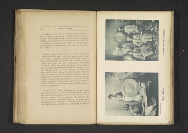 Curator: What strikes you first about this page? I’m immediately drawn to how pale the sepia tones are, almost dreamlike. Editor: Immediately, I’m thinking about power dynamics. Look how this moment of potential betrayal and deep introspection, from Leonardo's “The Last Supper,” is presented in the late 19th century: mediated, flattened, reproduced, and contained within the pages of a book. What is gained and lost in translation? Curator: Precisely. The Rijksmuseum holds these two photographic reproductions, created before 1887, of engravings depicting Leonardo's fresco. There is this fascinating layering of media at play. What does this gesture towards reproducing reproducibility tell us? Editor: Right, this isn't even the artwork. It's an image *of* images, prompting a host of questions. Who chose to include these particular reproductions? What's the context of this book? And why choose photography – then still a relatively new medium - to present these images? Curator: It’s anonymous, adding another layer of mystery! These aren’t crisp, modern photographs, which lends them a spectral quality. The soft focus almost imbues the scene with a sense of the ethereal, even when stripped from its architectural context. It takes away its immensity to give us a domestic iteration. Editor: And it makes you consider access. Before photography and readily available printmaking techniques, encountering iconic Renaissance masterpieces would be largely confined to the elite. The book, then, is democratizing. It attempts to make this pivotal scene accessible to a wider audience – a tangible, portable 'Last Supper.' How subversive or inclusive could it become through its mediation? Curator: I love that notion. The positioning on the page further enhances the experience. It begs you to turn it round and really look closely, forcing contemplation as a viewer. Is this some kind of precursor to digital archives? The internet itself is full of fuzzy appropriations. Editor: Maybe. Though it’s equally worth remembering what a precious object a book like this still was at that moment in time. These reproductions weren't just circulated freely online but carefully curated, bound, and presented in a specific narrative and for a specific educated consumer base. Curator: The more we dissect it, the more apparent its conceptual depth becomes. It's quite lovely when a seemingly simple image sparks so much thought, isn’t it? Editor: It is, especially when it reminds us to critically examine what and how historical narratives continue to be molded and circulated through contemporary platforms, even now.