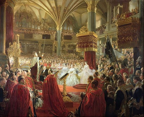 Gerolamo Induno created this painting, *Victor Emmanuel II Entering Venice, 7 November 1866*, using oil paints on canvas. The real subject of the painting isn’t just the King of Italy’s triumphant arrival, but the spectacle itself. The flag-waving crowds, the ornate architecture, and the gilded barge – all these elements were very carefully arranged and staged for maximum impact. The painting mimics this, with layers of colors and textures that guide our eye through the scene. Consider the sheer labor that went into this moment: the construction of the barge, the weaving of the fabrics, and the tailoring of the clothes, not to mention the planning and execution of the event itself. Induno’s painting reduces all of this to a surface, celebrating the unification of Italy without necessarily acknowledging the labor and resources that made it possible. Ultimately, the painting asks us to consider the relationship between these grand historical moments and the material conditions that underpin them.