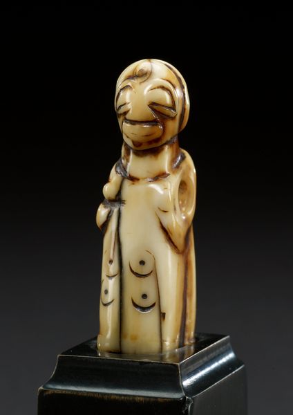 Curator: Standing before us, we have "Seated Figure," a terracotta sculpture dating back to the 6th century from the Nok culture. Editor: The figure’s stillness strikes me; an almost mournful expression frozen in the clay. It looks rather compact too, a feeling emphasized by the way it's posed. Curator: The Nok culture, located in what is now Nigeria, is renowned for their sophisticated terracotta sculptures. Their work, including this particular figure, played a significant role within political and social systems of the time, used in rituals connected to power, agriculture and more. Editor: Power you say, and yet that expression seems to be in conflict with authority. Given its seated posture, are there indications of rank within this figure or society more generally perhaps reflected through stylistic elements? What would an individual’s societal position be? Curator: The figure’s adornments, like the intricate headpiece, bands across the torso and carefully defined details of the face, likely denoted status and perhaps specific roles. Furthermore, examining the composition of where such figures were found, whether residential, civic, or sacred locations, tells a deeper story of community values and authority. Editor: What strikes me most is the ambiguity, how the fixed, almost abstracted, features invite projecting meaning. It’s hard to know how such representations can be reclaimed outside of institutional spaces today when so little is actually known with certainty concerning the artist. Curator: Absolutely, such discussions are pertinent. We need to reflect upon and contextualize colonial legacies embedded within the historical narratives surrounding such cultural objects. Reclaiming the narratives while giving more attention to interpretation from African researchers and theorists for instance, is key to reshaping our understanding. Editor: It’s fascinating how a seemingly simple object can be a portal into understanding ancient societal dynamics and continued considerations about the narratives we share in our present moment. Curator: Precisely, this statue is an extraordinary point of conversation spanning past, present, and possibilities for a more thoughtful engagement with ancient traditions going forward.