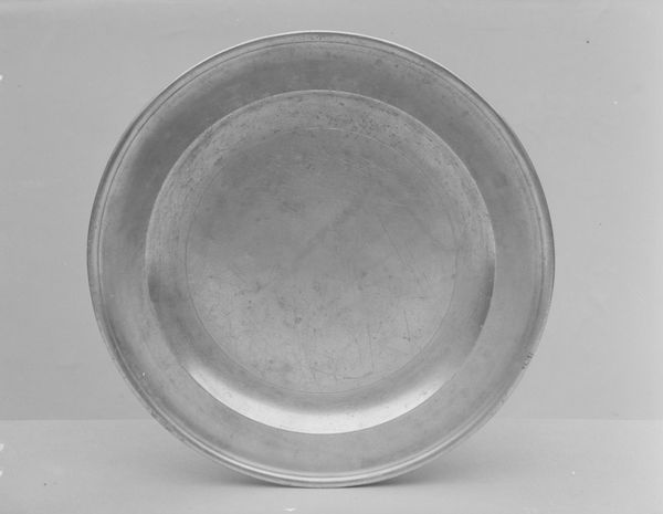 Editor: So, this "Dish," crafted by Thomas Danforth III somewhere between 1807 and 1813. It’s currently at The Met. Made of earthenware, it looks so simple, almost… austere, at first glance. It is like looking into a pewter pond! What do you see in this piece, beyond its utilitarian form? Curator: Ah, yes, utilitarian until we imbue it with a bit of poetry, right? Think about the hands that shaped it, the fires that baked it. Each scratch and mark whispers a story of its creation, of the daily life it witnessed. It's like a silent witness to history, wouldn’t you agree? Editor: I hadn't thought of it that way, but I suppose every object has a story if you look close enough. I mostly just saw…a dish. Curator: Exactly! And isn't that marvelous? That even the most humble object can hold universes within itself. The monochrome finish adds to that depth too; it has absorbed many stories over the centuries! This could even become an artistic expression simply using earthenware! Do you feel like it opens our mind into an awareness of the artist, even beyond their time? Editor: I suppose so. It's definitely got me thinking about all the everyday objects around me a little differently. It’s pretty amazing how an object this simple can trigger all this conversation. Curator: Indeed. Sometimes, the loudest statements are whispered. You got this, dearie. Now go ponder that!