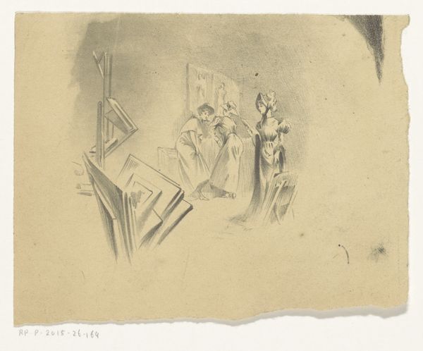 Curator: This drawing, executed with pen and engraving, dates from 1870 to 1873 and is titled "Illustration til 'De vilde Svaner' i H.C. Andersen, 'Eventyr og Historier', Bind 1" by H.P. Hansen. It’s currently held at the SMK, the Statens Museum for Kunst. Editor: My immediate response is one of lightness, perhaps tinged with a bit of wistful magic. The monochromatic palette, with those delicate lines, renders a scene that feels both ethereal and grounded, like a dream caught on paper. Curator: Yes, that’s partly attributable to the medium itself, I think. The density of line creates tone and volume, particularly in rendering the textures of the figures' robes, without recourse to color. See how the texture almost disappears into plain, thin hatching, further away in space, allowing for effective perspective in the outdoor scene. Editor: The swans are fascinating! The swan motif, of course, has a long history in mythology and folklore, typically connected with beauty, transformation, and grace. Here, though, I think the presence of the crowned female figure overlooking the swans transforms the image into something very interesting and potent, an exploration of destiny. Curator: The composition is indeed worth examining in terms of spatial organization. Note how the artist employs framing devices like the balcony to isolate the swan figures in an outer realm, using formal lines to communicate distance. There is, too, the stark juxtaposition of the curtain with strong hatching on the right side of the artwork, mirrored by the hatching over the back of the woman; it effectively and quite artfully establishes a boundary between the interior and the world beyond, with the swan existing out of human touch. Editor: Boundaries, precisely! They're physical, represented by that balcony, but also metaphorical – youth and transformation. She almost seems to reach, gesturing towards the enchanted. This illustrates themes within the original tale of isolation, familial devotion, and perseverance through trials, where swans act as agents of transformation. Curator: Indeed, there's an internal logic at play here in this picture plane, and that is beautifully represented. Editor: It is fascinating how Hansen has captured a tale using universally powerful symbols. These visuals tap into something deep and almost instinctive in the viewer's psyche, prompting feelings of hope, determination, and sacrifice. Curator: Indeed, reflecting upon its execution and symbolic resonance illuminates Hansen’s craftsmanship and also allows a deep appreciation for form. Editor: Seeing beyond immediate artistry does grant you a great appreciation for the deeper messages here, and it leaves you pondering the universality of its message and how, at its core, it’s also about empowerment and a young woman embracing a calling.