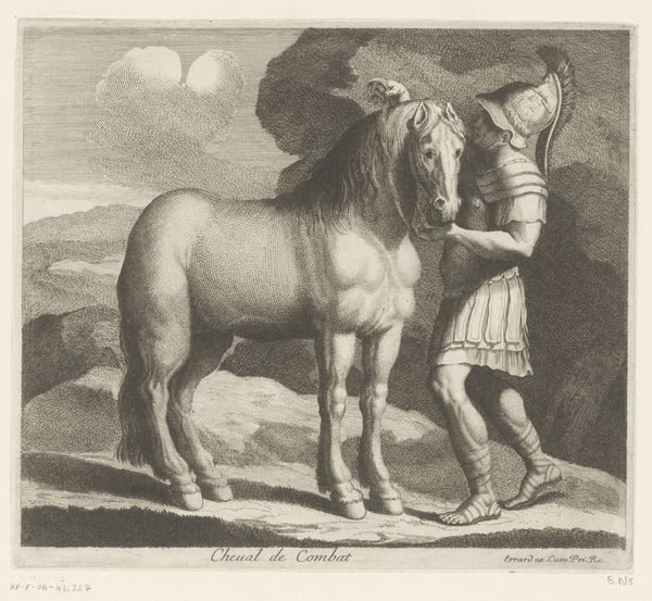 Charles Errard le fils made this etching, Masete de Normandie, in the 17th century. Here, the prominent motif is the horse, a symbol deeply entwined with human history. The bond between man and horse is palpable, reflecting a relationship of utility, power, and even companionship. The horse's symbolic trajectory is fascinating. In antiquity, we see the horse associated with war, strength, and nobility, pulling chariots of gods and emperors alike. Yet, it also embodies freedom and wildness, untamed spirit. Consider the equestrian statues of Roman emperors – symbols of dominion – compared to the mythical Centaurs, creatures of instinct and primal energy. The act of drinking, too, carries weight. It’s a moment of vulnerability, of trust. The horse, lowering its guard to drink, echoes the human need for sustenance and vulnerability, a poignant reflection on our shared dependence on the natural world. This image stirs a primordial connection, inviting us to contemplate our long, complex relationship with these magnificent creatures.