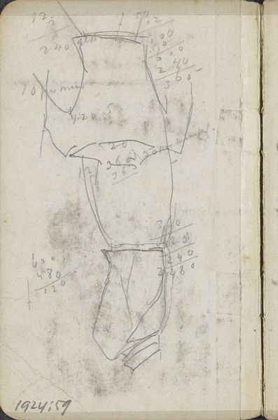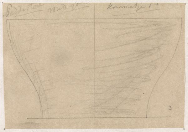 This is Theo Colenbrander's preparatory sketch for a cup, meticulously rendered in pencil. The composition is dominated by the cup's symmetrical form, its gentle curves swelling and tapering to create a pleasing visual rhythm. The vertical and horizontal lines suggest careful planning, emphasizing the object's structure. Colenbrander, known for his designs in ceramics, explores the relationship between functionality and aesthetics. The sketch reveals his attention to form and proportion, central to the cup's utility and visual appeal. This emphasis on structure can be seen as a reflection of broader design principles, where utility and visual harmony intersect. The sketch, with its careful lines and balanced form, invites us to consider the interplay of function and beauty in everyday objects. It's a reminder that even the simplest items can be elevated through thoughtful design.