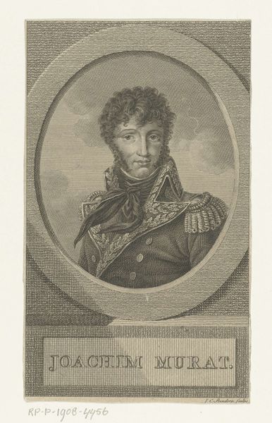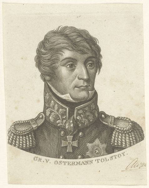 Editor: This engraving from the Rijksmuseum depicts Karl Philip zu Schwarzenberg; it was made sometime between 1783 and 1851 by Willem van Senus. The level of detail the artist achieves with what appears to be very fine lines is remarkable! What symbolic weight do you think this portrait carries? Curator: Look at the symbols adorning Schwarzenberg's chest—medals and ornate decorations. These aren’t just embellishments. They are visual shorthand representing power, service, and belonging to particular orders or nations. It's interesting how these small objects carry immense cultural and psychological weight. The sitter and artist wanted you to 'read' his social identity, but did they wish to tell more, even of themselves? Editor: Social identity is a powerful way of thinking about this image. So, are these decorations intended to project a sense of authority and perhaps invincibility? Curator: Indeed. The circular format adds another layer. Circles, since antiquity, signify completeness, eternity. Framing Schwarzenberg this way subtly elevates him. Beyond the image's content, how do you think the neoclassical style impacted the reading of this image? Editor: The neoclassical style and its historical context seem crucial. Its embrace of order, rationality, and idealized form lends the portrait an air of stateliness befitting a military leader of the period. Curator: Precisely. And it harkens back to a perceived golden age of stability and order. Images like these contributed to solidifying cultural narratives of leadership and national identity. Ultimately this image is more about the man's rank and place in history. Editor: This has certainly changed the way I initially perceived it; all these layers and embedded symbols speak volumes about that period's culture and values! Thank you for helping me to unpack the image's cultural significance.
