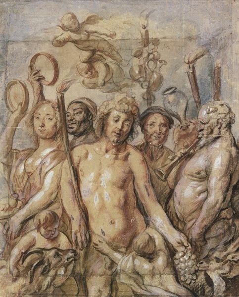 Curator: Looking at Edward Burne-Jones's "Helen Captive in Burning Troy," dating from 1870 to 1872, what immediately strikes you? Editor: A sense of subdued chaos, I suppose? The red and ochre palette feels like smoldering embers, and the figures are densely packed, conveying a feeling of claustrophobia and dread, but everyone is naked so is that just my projection? Curator: The monochromatic color scheme, achieved using oil and tempera, effectively creates the oppressive atmosphere you mention. Burne-Jones used layering techniques here that are common in his other works. His interest wasn't as much the event but more of the creation of a mood for the viewer. Editor: That "mood," as you call it, hinges on representing female bodies as spoils of war. Even amidst destruction, the patriarchal gaze persists, framing Helen as the ultimate prize. The image aestheticizes trauma while denying agency. It seems like the labor of crafting this picture normalizes viewing women’s pain. Curator: You make an interesting point; the labor invested in creating this image—grinding pigments, layering tempera, posing models—becomes complicit in representing women’s pain. Yet the historical context also needs consideration, given Burne-Jones was critiquing Victorian ideals with classical narratives. Editor: Context doesn't negate impact. This image feeds into a long history of representing women as symbols, devoid of their own experiences during conflicts and is consumed as decoration by the upper class. How do we reconcile enjoying something that stems from real suffering? Curator: That’s a discomforting challenge the painting throws up, one we cannot—and shouldn't—easily resolve. We, today, are invited to question how such subjects were—and continue to be—manufactured for art. Editor: Right. So, engaging with this work, then, demands an interrogation of how aesthetics, materials, and historical narratives can obscure violence against women. It forces us to ask: whose stories are being told, and at what cost?