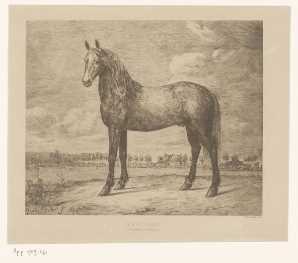 Editor: Here we have Richard Houston’s engraving, "Racepaard met jockey", placing it somewhere between 1731 and 1775. The horse dominates the composition, possessing an almost regal quality. The jockey seems diminutive in comparison. How do you interpret this work? Curator: The horse certainly stands as the primary symbol here. Beyond just being a representation of an animal, it’s charged with significance. Think about the history embedded in the image. This isn't simply a horse; it is a racehorse, tied to aristocracy, wealth, and leisure. The jockey, then, becomes a figure of service and class distinction, literally holding the reins of power. Do you see how the size differential underscores this dynamic? Editor: Absolutely, it’s hard to miss. But what about the landscape itself? It seems deliberately understated. Curator: Indeed. The subdued landscape acts as a stage, highlighting the central figures and allowing them to command our attention. It avoids distraction, guiding our gaze back to the cultural symbolism inherent in the relationship between the horse, the jockey, and, by extension, the societal structure they represent. It's a world of inherited status. Editor: That makes sense. The emphasis on the horse as a status symbol… It's something I hadn’t fully considered. I was mostly thinking about aesthetics, but you’ve shown me so much more in terms of historical and societal symbols. Curator: And you've reminded me that aesthetics serve as a powerful conveyor of these underlying stories. It's a dialogue between image and context that allows us to uncover so much.