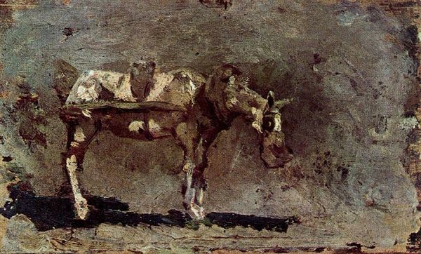 Edgar Degas created this intimate oil painting, "Study of Horses," sometime during his career, as a private glimpse into the artist's fascination with equine form and movement. Degas, a man of wealth, moved in social circles where horse racing and equestrian culture were signs of status. Yet, rather than depicting grand races or triumphant riders, here he focuses on the horses themselves, capturing their quiet, almost melancholic presence. The muted tones and loose brushwork add to this introspective mood. It's hard not to consider the societal role these animals played, particularly in an era defined by rapid industrial change. Horses were symbols of power and labor, but Degas’s soft, informal approach seems to quietly resist the more conventional, heroic representations. These are not beasts of burden or symbols of aristocracy, but rather creatures rendered with a palpable sense of dignity and inner life. Ultimately, the painting encourages us to consider the lives and experiences of these animals, and to reflect on the complex relationship between humans and the natural world.