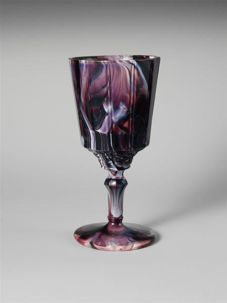 This goblet was produced in the United States by Challinor, Taylor and Company, sometime between 1866 and 1891. It's made of glass, but not just any glass – this is what's known as "agate" glass, due to its resemblance to the banded gemstone. The production of agate glass was achieved by combining different colors of molten glass, swirling them together, and then pressing the mixture into a mold. The key to the process is speed. If you took too long, the colors would simply blend, and you’d get mud. The relative quickness of industrial pressing was perfect for capturing the swirling effect. This kind of glassware reflects the industrial ambitions of the late 19th century. It was an attempt to bring the beauty of rare, natural materials to a mass audience, at an affordable price. So, next time you see an object like this, remember that it's not just about aesthetics, but also about the complex interplay of labor, technology, and aspiration.