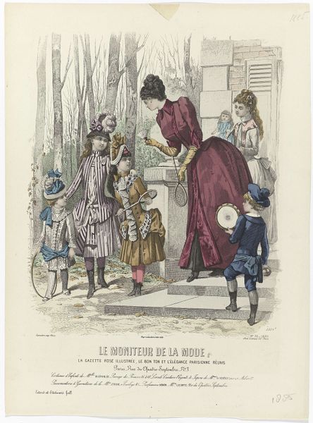 Edouard Tailland created this print for "Le Moniteur de la Mode" in 1886. It depicts Parisian women and children modeling the latest fashions. Fashion magazines like "Le Moniteur" played a key role in shaping social norms in the late 19th century. They not only showcased clothing but also promoted specific ideals of femininity, domesticity, and social class. Notice how the outfits subtly indicate the social standing of the wearers. The adult's dress is more ornate and probably more expensive than the children's. But even their clothes are designed to mirror the latest adult fashions. This image also speaks to the rise of consumer culture during this era. The magazine itself was a commodity, and it encouraged readers to purchase the clothing and accessories it featured. By studying publications like "Le Moniteur" and the social conditions in which they were produced, we can learn a great deal about the values and aspirations of the Belle Époque.