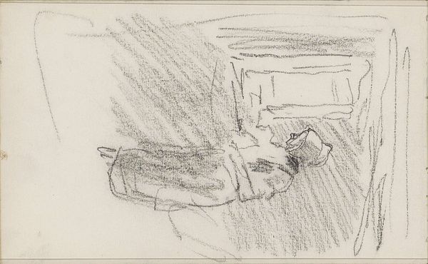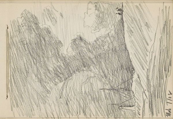 Curator: Here in the Rijksmuseum we have a drawing by Isaac Israels entitled "Standing Woman with Hat, Seen from the Back," created sometime between 1915 and 1925, using pencil. It’s an evocative study. What’s your first impression? Editor: It feels quiet, almost lonely. The woman’s back is to us, her hat casting a shadow, obscuring any sense of who she is or what she’s thinking. It feels like we are intruding on a private moment. Curator: I think that captures the emotional ambivalence. Israels often depicted women in public spaces, but there’s a clear detachment, both physically and psychologically. Her isolation amidst a social milieu invites curiosity. He was certainly part of the Dutch impressionist movement, wasn’t he? Capturing fleeting moments and the ambience of daily life… Editor: Absolutely, but it's fascinating to me how the seeming casualness masks a potent statement on visibility and invisibility. Consider the period – the woman's anonymity underscores the societal limitations placed upon women, especially when they were not directly associated with domesticity. Her lack of specific identity encourages a more generalized reading, focusing on the everyday constraints and the objectification of the female form. Curator: It’s also technically quite fascinating. You see, it’s a study done in pencil; you could imagine that its creation required relative haste on the artist’s part. The diagonal shading feels frenetic, while the stark emptiness in the foreground draws my eye to the shadows behind the woman. Editor: It is about form and gesture. That frenetic shading adds to that sense of implied tension, and it invites one to ponder on class too, even gender roles, within that particular socio-political landscape. Did Israels, coming from his privileged background, reflect critically upon such matters in his broader work, do you know? Curator: Historical accounts describe his sympathetic eye, yes. However, that lens remains conditioned by his place in society and the social conventions of his day, to be sure. Still, he sought to offer his perspective on those frequently marginalized in artistic portrayals. Editor: He definitely provided the room for that interpretation here in this portrait, yes. It will always depend upon whose point of view it is seen. I agree with that. Thank you! Curator: Thank you!