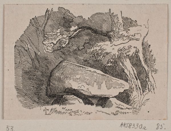 Adolph Kittendorff created this drawing, Tudsen, with pen on paper. The composition is immediately striking for its use of line, which creates a sense of depth. Notice how the artist contrasts the frog's textured skin with the smooth surface of the mushroom, and the jagged rocks with the soft grass. This contrast invites us to consider the interplay between the natural elements presented. Kittendorff masterfully uses the pen's capabilities to explore texture and form. Look at how the density of the lines changes to create shadows and highlights, giving volume to the frog and the surrounding foliage. This technique not only enhances the realism of the scene but also infuses it with a lively, dynamic quality. The image evokes an emotional response, a sense of being drawn into the scene, discovering the minute details of the natural world. In essence, this drawing destabilizes the common view of the natural world by prompting us to see beauty in the overlooked.