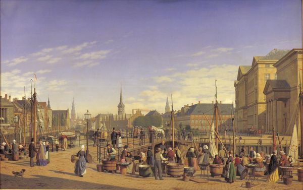 Editor: Here we have John Sell Cotman's "Norwich Market-Place." It's undated, but Cotman lived from 1782 to 1842. It feels like a bustling snapshot of everyday life. How do you interpret its depiction of public space? Curator: Cotman captures the marketplace not just as a site of commerce, but as a stage for social interaction. Notice how the architecture frames the scene. How does this composition affect your understanding of Norwich's civic identity at that time? Editor: I see how the buildings give it a sense of place and permanence. It makes the market feel central to the city's identity. Curator: Precisely. Consider also the politics of visibility. Who is represented, and how? The painting becomes a document of social hierarchy, reflecting the power dynamics inherent in public spaces. What did you observe? Editor: I noticed the variety of people and animals, but I hadn't considered the social implications of their placement. It's like the artwork invites us to see the market through a socio-political lens. Curator: Exactly! Cotman's marketplace transcends mere representation; it becomes a historical artifact, revealing the intricate relationships between art, society, and power.