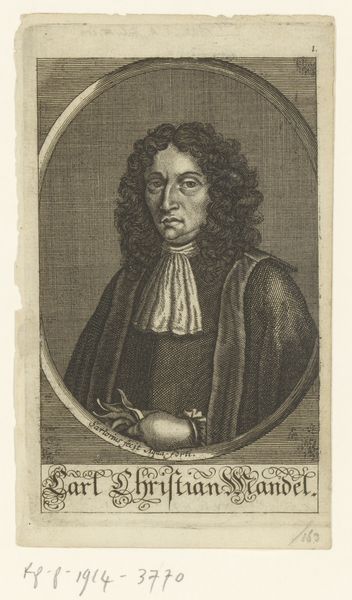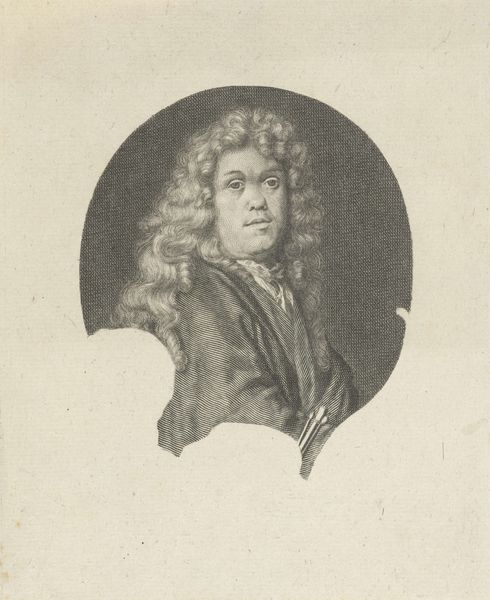 Curator: Mary Beale created this sensitive portrait drawing of Gerard Edema, a landscape painter, sometime between 1675 and 1685. Editor: It has a remarkable softness. The way the light falls across his face, the curls... it's almost dreamlike. It seems so delicate. Curator: Well, drawings such as this were integral to artistic circles. Beale moved within London's intellectual milieu, producing portraits—drawings, paintings—often on commission for the burgeoning middle class. Her studio fostered collaboration. Editor: The hatching technique in the drawing really catches the eye. It’s so subtle, building up the tonal range gradually. And notice how the highlights around the face draw your attention right to his gaze. Curator: Beale managed to support her family with her painting—remarkable for the period! And Gerard Edema, of course, had his own influence on the art scene. Editor: There’s a lack of hard edges that almost diffuses the portrait, allowing the character to come alive, to transcend its representational role. I'm curious about how she creates that almost smokey look with pencil on paper. Curator: I'm interested in what the image signified—the power dynamics at play between artist and sitter, what portraiture represented for society. A visible statement about status and personal branding! Editor: Yes, and it works incredibly well to capture that era. You understand the texture of clothing, how light reacts to skin... Wonderful rendering, full of movement, it doesn't come off as stiff in the slightest! Curator: Indeed. I am struck, looking again, at Beale's savvy career. Her family history illustrates much of how a woman navigated artistic channels at that moment. Editor: Ultimately, it's the execution and delicate shading, and rendering which really captures the eye.
