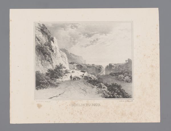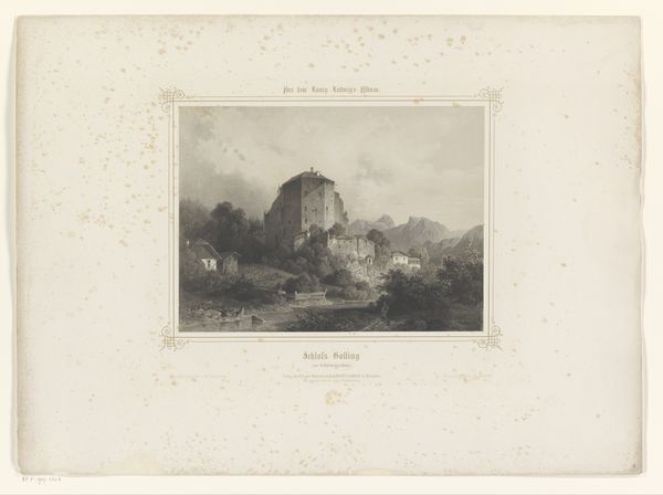 Curator: Immediately, I see it as a dream clinging to a cliffside. All in faded sepia tones, as though memory itself made the sketch. Editor: That's an interesting reading, this "View of Heidelberg Castle," made in the 1850s by Ludwig Meixner using lithography and etching, brings to mind questions about accessibility and reproduction. Curator: Accessibility? Reproduction? To me, this isn’t about exact copies. I think it captures the emotional essence of Heidelberg – the drama of ruined grandeur softened by nostalgia. The way the light filters through the trees almost feels like grace. Editor: But the choice of lithography *and* etching says a lot about production capabilities then. Lithography allowed for a wider distribution compared to single artworks; layering it with etching enabled fine details on mass. Making such images were intended to familiarize a larger audience with this majestic ruin... potentially stoking travel or reinforcing local identity. It makes you consider where and who got to see it and what the impact on cultural representation was in Germany in those years. Curator: I do like how you consider production; however, it also captures the Romanticism perfectly, how landscape mirrors an emotional state. Look at how small the castle is set against the drama of the setting; our fleeting existence facing the permanence of nature. Editor: Well, permanence through reproducibility, at least! Each print, regardless of artistry, needed materials: stones for lithography, acid for etching, paper. How were those materials sourced? How was that labor organized? Romanticism aside, somebody ground the pigments and made the presses, and this piece helps ask who were they? And that, in turn, impacts whose visions and voices rise in a culture. Curator: I concede. Looking at it again, the technique lends a uniformity to the landscape. It wasn't just one unique vision. But the emotional impact, still so strong! The melancholy clinging to the stone! Editor: Yes, precisely! We now have a reproduction for hundreds to contemplate. The materials tell the story, too. Curator: Well, I suppose this dialogue showed we each perceive echoes – be they in stone or on the printing press. Editor: Exactly. Seeing what’s represented – and how that representation was physically made manifest – that’s where art history sings, or grinds, depending on who’s singing.