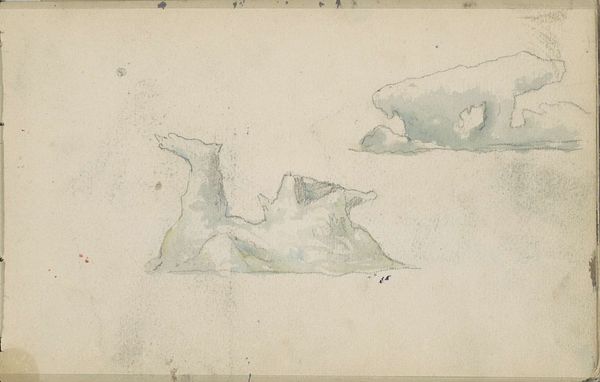 Louis Apol's sketch, 'IJsbergen' at the Rijksmuseum, presents a study in subtle contrasts of form and light through graphite on paper. The composition, sparse and airy, evokes a sense of the arctic sublime, where icebergs loom as monumental yet fragile forms. Apol's use of line is particularly striking; it defines the contours of the icebergs with a delicate precision, while also suggesting their mass and volume through subtle shading. The arrangement of the icebergs across the page creates a rhythmic visual cadence, almost musical in its arrangement. The texture of the paper becomes integral to the work, its grain subtly mimicking the rough surfaces of the ice. This sketch is not merely a depiction of icebergs, but an exploration of how form and structure can convey the essence and experience of nature's grandeur. The cool detachment in Apol's style encourages us to contemplate the deeper structures that shape our perception.