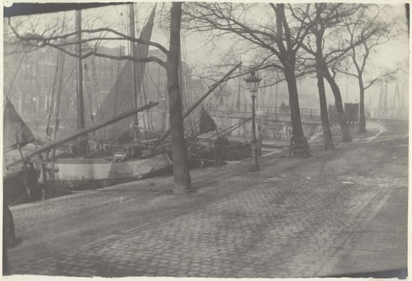 Editor: So, here we have Robert Frank's "Paris in Snow" from 1951, a gelatin silver print. There's a stillness to this cityscape that’s really captivating. It feels… almost dreamlike. What stands out to you about it? Curator: What immediately strikes me is Frank's choice of gelatin silver. Its materiality provides this muted, almost melancholic quality, doesn't it? How do you think this processing method affects the depiction of Parisian life, especially considering the city's association with vibrancy and dynamism? Editor: It definitely mutes the usual romantic image, doesn't it? I hadn't thought about the "how." Does the "what" change with his choices of process and material? Curator: Precisely! Think about the labor involved in producing such a print in the post-war era. This wasn’t a mass-produced image. The conscious effort behind the print’s specific tone, its grain, they become central. Paris, after the war, was undergoing profound social and economic changes. How might Frank be using the material to subtly comment on the post-war state, the labor of rebuilding perhaps, rather than glorifying the stereotypical Parisian charm? Editor: So, instead of focusing solely on the beautiful Parisian scenery, we should also be considering the socioeconomic backdrop and Frank’s artistic labor in capturing this particular mood and making these very specific choices with material? Curator: Absolutely. The scene isn’t merely observed, but *produced* through the photographer’s engagement with specific industrial materials and a distinct labor process. Editor: I'm starting to see that by examining the process and materials, we gain insights into the historical and social context, and a very different feel for post-war Paris. Thank you, this has really made me reconsider how I look at photography. Curator: My pleasure. Considering the labor of making shifts our focus, challenging conventional understandings of photography as solely about capturing a moment, doesn’t it?