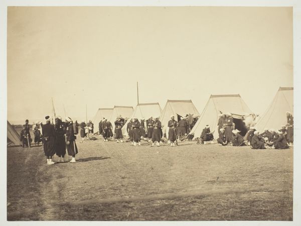 Gustave Le Gray created this albumen print, entitled "Zouaves," sometime in the 19th century. The image depicts a company of French colonial soldiers in Algeria, identifiable by their distinctive North African-inspired uniforms. Le Gray was commissioned to document the French military during a period of colonial expansion. Through the visual codes of military portraiture, the image emphasizes the power of the French army. It romanticizes military life, obscuring the brutal realities of colonial occupation. Note how this contrasts with the rise of photojournalism, which began to expose the harsh truths of war and colonialism. The image raises questions about the politics of imagery, and the ways in which photography can be used to shape public opinion. To better understand the image, we can look to historical archives, military records, and accounts from the period. These resources can reveal the complex social and institutional forces that shaped the production and reception of this artwork. This can help us reflect on the meaning of art as something that is contingent on social and institutional context.