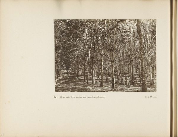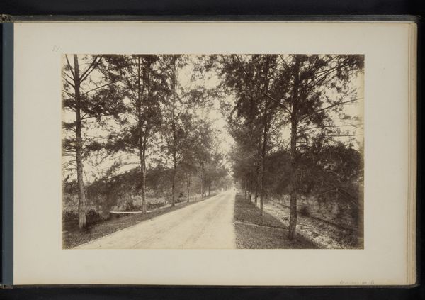 Editor: Here we have "Pagina 139 van fotoboek van de Algemeene Vereeniging van Rubberplanters ter Oostkust van Sumatra (A.V.R.O.S.)", a gelatin silver print, dating from around 1924-1925. It depicts a tranquil path lined with lush trees. I am struck by the single figure walking away from us. How do you interpret this photograph within its historical context? Curator: That's a great observation. While seemingly a peaceful landscape, this image is deeply embedded in the complex history of Dutch colonialism in Sumatra. The "Algemeene Vereeniging van Rubberplanters ter Oostkust van Sumatra," or AVROS, was essentially a conglomerate of plantation owners profiting from rubber production. We need to consider whose labor built this path and at what cost? Editor: So the serene scene is actually a facade, concealing exploitation? Curator: Exactly. The lone figure might be interpreted as representing the colonizer, isolated within a system built on the exploitation of indigenous labor. Consider also the composition: the receding path draws the viewer in, subtly inviting complicity in this colonial vision. What does it mean to frame this specific perspective during this period? Editor: It's like the photograph is presenting a sanitized version of reality. I hadn’t thought about it that way initially. Curator: It's crucial to deconstruct these seemingly benign images. This photograph isn’t just a landscape; it's a document reflecting power dynamics, the objectification of both people and the land, and the systematic erasure of indigenous narratives. Editor: Thinking about it as a form of Orientalism, then. It reframes a place and its people for a specific audience with its own agenda. Thank you; that has completely changed my perspective. Curator: Precisely. It is in peeling back these layers that the photograph can become a powerful tool for understanding the uncomfortable truths of our past and its lasting legacies.