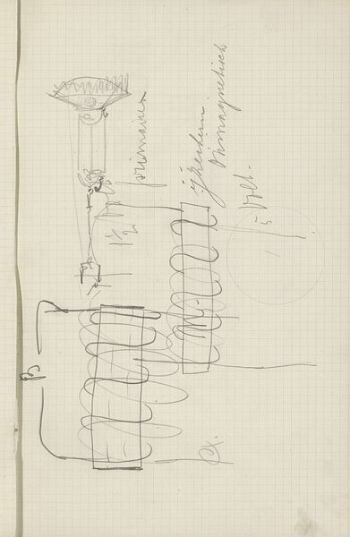 Antoon Derkinderen made this drawing, ‘Venster met een staande figuur’, using what looks like graphite on paper. It’s really like a notebook page or a sketch—a flurry of thoughts captured in lines. There's a sketched figure beside columns of text. These notations and lines are not labored over, but feel immediate and instinctive. The window frame, rendered with simple lines and a string of circles, is almost childlike in its execution. The hand-written text dominates the composition and gives the piece a sense of energy. Look at the way the lines are drawn—some are firm, others are tentative, almost like the artist is thinking aloud on paper. This drawing reminds me of Cy Twombly's work—the way he layered text and image and created a kind of visual poetry. There is a similar kind of freedom, and ambiguity at play here, a sense that the drawing is a space for exploration.