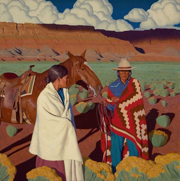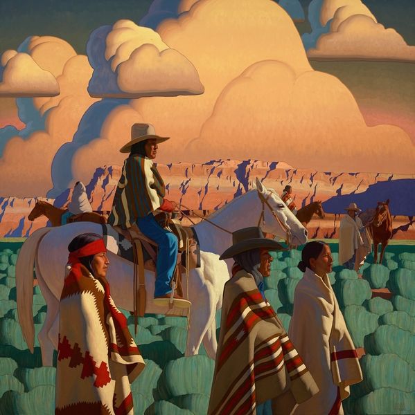 Logan Maxwell Hagege painted "The Clouds Are Moving," sometime after his birth in 1980. Hagege works within the well-worn genre of art of the American West, where artists often represent Indigenous people in romanticized ways. However, Hagege here complicates this familiar image. On one hand, he repeats visual tropes, such as the stoic Indigenous man, here in profile, and the horse, standing in a classic pose. Yet Hagege subtly destabilizes these tropes by picturing the saddle with an American flag. What are we to make of this image of a Native man and an American flag saddle? Is Hagege pointing to assimilation, conquest, or perhaps resistance? As historians, we must look to the social and cultural context of the American West to analyze how images, like this painting, have operated within institutions of art and power. The project of art history, therefore, is to ask how art objects participate in the social structures of their time.