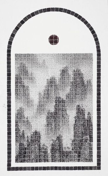 Curator: Lee Chun-Yi's work, “Myriad Peaks,” part of the “Sacrifice” series, presents an intriguing interplay of landscape and geometric abstraction. It's currently held here at the Harvard Art Museums. Editor: It immediately strikes me as a rather unsettling, almost clinical depiction of nature, contained within that rigid grid. Curator: Precisely. The use of the grid subverts traditional landscape painting, creating a tension between organic forms and the imposition of structure. Notice how the peaks are rendered within that framework, a visual metaphor perhaps for control or constraint? Editor: Yes, and considering the series title, "Sacrifice," one can't help but wonder what is being sacrificed here. Is it the freedom of nature, the artist's vision, or perhaps a commentary on societal constraints imposed on the natural world? Curator: The monochromatic palette further enhances this sense of restraint, focusing attention on the meticulous detail and the underlying geometric scaffolding. It also simplifies and distills the image into almost pure form. Editor: Ultimately, it leaves us with a powerful question: what are the costs of imposing order and control, be it on nature, society, or even our own selves? Curator: An excellent point. The work clearly operates on many levels.