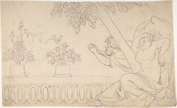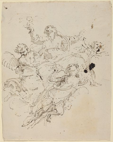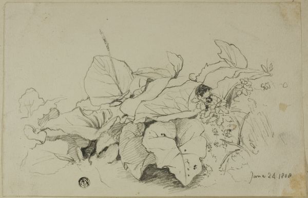 Curator: I’m immediately drawn to the subtle energy within this collection of plant studies, rendered in ink. Editor: Agreed. At first glance, there's almost a feeling of quiet observation, yet the strokes suggest something more active. The composition seems rather dense; a flurry of different species, superimposed as if gathered on a single plane. What can you tell me about this sheet? Curator: Certainly. This drawing is attributed to Dankvart Dreyer. The artwork, called “Plantestudier”, which translates to “Plant Studies” in English, was done somewhere between 1831 and 1852. It currently resides here at the SMK, or the National Gallery of Denmark. Editor: So a study from the Danish Golden Age! These almost ethereal, overlapping planes – do you find these a manifestation of any specific cultural symbol? The foliage appears unidealized, not heroic like we see in Friedrich. Curator: Indeed. Dreyer, aligning himself with Romantic ideals and the rising Realism movement, finds a sense of nation not through allegorical symbolism but in careful recording of native species. His mark making here mimics the direct and unaffected observation of truth of nature advocated by thinkers of the time. These drawings evoke an understanding of identity being linked directly with our natural surroundings, especially land. He is building on a movement that equated love for the natural world as synonymous with the development of patriotism. Editor: Yes! Look at this incredibly skillful hatching. Observe how the differing lines add form, depth, and contrast. But for what purpose? Surely these aren't botanical illustrations strictly speaking? Curator: No, not exactly. These drawings would have served Dreyer in his painting production. Through art like this, there is a cultural continuity; the rural is no longer simply scenery but a subject worthy of observation. The artwork echoes themes dear to the era of natural observation and appreciation; one with symbolic weight due to the importance nature played in nation building at this time. Editor: A subtle demonstration of nation through drawing; not an epic depiction, but a tender consideration of land in itself. These plant studies leave me contemplating the profound relationship between nature and culture, beautifully articulated in seemingly simple sketches.