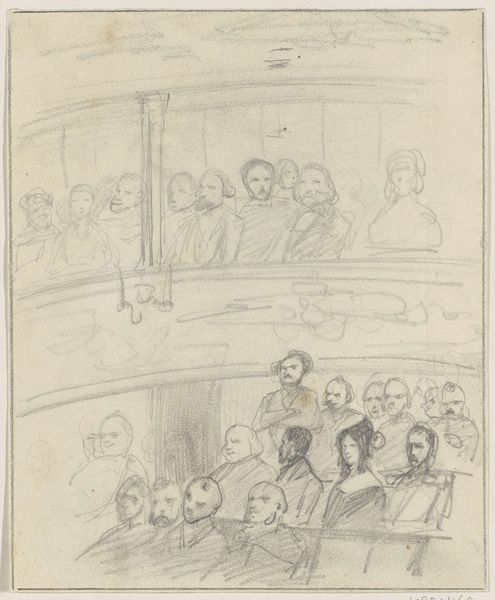 Editor: This is Carl Philipp Fohr's "Second Draft for the Group Portrait of German Artists in the Caffè Greco in Rome, Right Half," created in 1817 using pencil. It’s unfinished, like a ghostly gathering. What catches your eye? Curator: Well, as a materialist, my focus goes straight to the labor inherent in this drawing, even in its incomplete state. Think about the sourcing of the graphite, its refinement into pencils, the physical act of applying it to the paper – the sheer manual effort needed for such a large, detailed composition, especially in 1817! How do you think the ready availability, or lack thereof, of drawing materials affected the scope of a work like this? Editor: I never considered the pencil itself. I guess easier access would make a larger work like this less daunting. But the location seems significant too, right? A cafe in Rome? Curator: Absolutely! "Café Greco" wasn't just a backdrop. It was a hub of cultural exchange. Now, imagine the social conditions of these artists. What materials – both artistic and societal – were available to them in that specific time and location? Consider the economics of art production during the Romantic period, who had the resources to travel and spend time in Rome? Editor: So it's not just the drawing, but the conditions that made it possible. Curator: Precisely. We should ask: how did the café’s environment—its status, its social currency— shape this artistic rendering? How did they secure or utilize such settings to nurture ideas and promote creation? The materials involved include access and cultural status, impacting art in the Romantic period. Editor: That's a different way to consider a portrait! Thanks! Curator: Of course! It’s fascinating to think about how access and conditions determine the art we see.