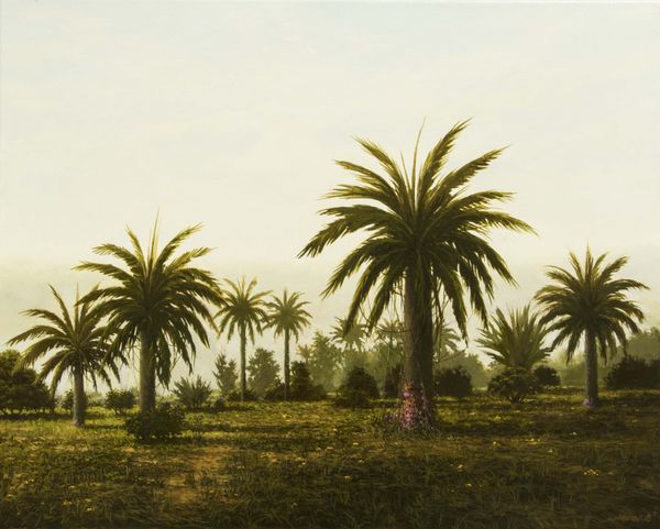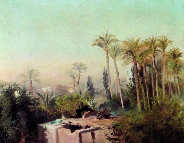 Editor: Here we have “Palmentuin van Elche,” a photograph dating back to around 1900, credited to F. & Co. The way the light filters through the palm trees creates a dreamlike quality. I’m struck by how timeless it feels. What do you see in this piece? Curator: The enduring allure lies, perhaps, in its symbolism. Palms, across cultures, represent triumph, peace, and eternal life. Their presence here, bathed in the soft light, echoes the idea of paradise, a place of refuge and timeless beauty. Notice that one arched palm. What does that particular form evoke for you? Editor: It’s kind of whimsical, but it also looks like it’s reaching out, bridging a gap. Does that connect with the idea of paradise? Curator: Indeed. Consider this image in the context of its time. At the turn of the century, photography was still finding its artistic voice, often borrowing from painting styles like Impressionism. This photographer, whether consciously or not, utilized a visual shorthand—palms equals paradise—to connect with the viewer on an emotional, almost subconscious level. It speaks to the desire for a harmonious existence. Editor: So the image isn't just a nice view, it's tapping into something deeper about what people wanted, or yearned for? Curator: Precisely. The symbolism creates a bridge across time, allowing us to feel the same longing for peace and tranquility that viewers might have felt a century ago. Even in what seems a simple landscape, complex meanings reside. Editor: That’s really interesting. I never considered how much cultural baggage a single type of tree could carry! Curator: Visual language surrounds us. Recognizing it helps us decipher the world around us, and images from the past.