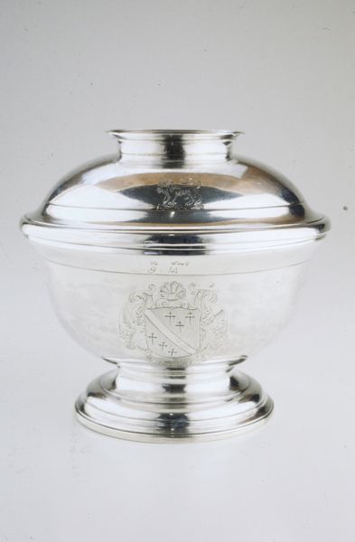 Curator: This ornate metal object before us, crafted by Elkington & Co. between 1865 and 1885, is a "Monteith"—currently residing here at the Metropolitan Museum of Art. My first impression is how very silver and heavy it looks. What strikes you immediately? Editor: My god, look at this thing – it's just begging for punch, isn't it? Seriously, you could serve a crowd out of that bad boy. And all those tiny repeated details on its surfaces, the baroque curves; you could spend hours looking! Curator: Indeed. These were showpieces, luxury goods produced at a time of booming industry and imperial expansion. We have a collision here of class aspiration and highly developed skill with materials. And, the "Monteith" bowl itself is very interesting, as a name of the man who favored scalloped glasses; each placed inverted on the notch edged rim, with its foot inside the bowl! Isn't it wonderfully decadent to think about that?! Editor: Well, think about what it took to actually make this thing. The labor involved—the casting, chasing, and polishing... Every single one of those lines! All that careful, skilled labour so some posh people can dangle a glass! Curator: I suppose one can see a strange kind of beauty, in that though, don’t you think? In those times, artistry and meticulous craftsmanship converge within these kinds of items... It feels both terribly exclusive and yet speaks to broader innovations happening in decorative art. Editor: Maybe, if you like that sort of thing. I see class and consumption cast in gleaming silver and think that, the piece almost mocks labor value! Curator: Ah, but isn't that contrast something of an achievement? Something uniquely its own! Though the work asks questions about labour, class, taste, its gleaming visage begs a few deeper meditations of the eye itself. Editor: I guess you're right about that clash between intention and impact. You certainly have given me more food for thought today than silver. Curator: Gladly! I think what ultimately lingers is how material culture allows these little—or not so little—wonders to be made!