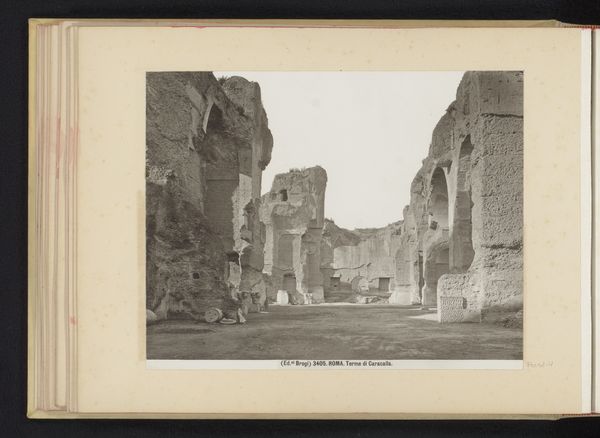 Curator: Here we have Joseph-Philibert Girault de Prangey's daguerreotype, "Hexagonal Court, Temple of Jupiter, Baalbek," created in 1843. What are your initial impressions? Editor: A profound sense of melancholic grandeur. The desaturated tones give it a ghostly, almost dreamlike quality. The remnants of these massive structures hint at an era of both power and irrevocable loss. Curator: Note how Girault de Prangey frames the architectural ruins. He meticulously captures the geometric patterns and the sheer physicality of the stone blocks. The composition uses the crumbling facade to play with shadow and light, emphasizing depth and scale. Editor: Indeed, but for me, those aren't merely stones; they are the vestiges of Jupiter’s temple. In ancient cultures, Jupiter held a central place as king of the gods, symbolizing law, order, and cosmic balance. These stones once formed a space for ritual, a site brimming with cultural significance. Curator: And technically, the daguerreotype process itself contributes significantly. The fine detail and tonal range he achieves are quite remarkable for this early photographic technique. It freezes not just a visual image but also a specific moment in the archaeological record. Editor: Precisely. The crumbling blocks speak to cycles of building, destruction, and rebuilding over millennia. Every crack in the stone is a silent echo, telling tales of earthquakes, wars, and forgotten empires. The enduring allure of Jupiter's temple lies in its layered stories of civilizations meeting, clashing, and eventually fading away. Curator: Viewing the piece through that lens offers additional levels of meaning. Analyzing the composition in concert with these historical resonances shows Girault de Prangey as not just a documentarian, but as an artist shaping our understanding of visual and historical records. Editor: Absolutely. This is a powerful testament to enduring human endeavors and a potent reminder that time relentlessly transforms all things. Curator: Thank you, I appreciate your thoughts on this intriguing visual testament to civilization. Editor: A fascinating dialogue, I leave with an amplified awareness of Jupiter's legacy.