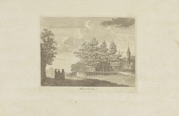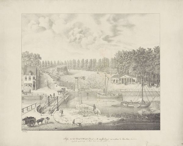 Curator: This engraving from the late 17th century, sometime between 1694 and 1697, gives us a glimpse into 'Gezicht op Kasteel Het Oude Loo'—that's 'View of Het Oude Loo Castle,' created by Jan van Call. It captures the castle and its formal gardens in a carefully composed scene. Editor: My first thought is that this feels…peaceful, but also meticulously controlled. The landscape seems manicured down to the last leaf, doesn't it? Those orderly gardens remind me of intricate embroidery. Curator: Absolutely. The artwork reflects the Baroque aesthetic, emphasizing order and a constructed sense of harmony. Note how the garden's layout echoes the castle's architectural symmetry. It's about projecting power and status through visual means. Editor: Power, yes, but perhaps also an idealized version of nature. The figures almost seem secondary, part of the landscape itself, more ornamental than substantial. Is it the people enjoying the garden or is it a stage for displaying their status, or both? Curator: That's an interesting point. Public gardens like these became crucial spaces for displaying social standing and conducting political affairs. What looks to us like mere leisure was carefully managed social theatre. Editor: Theatre! I like that. Almost as though everyone knew their place in this tableau, from the nobility to their hounds. It's all so terribly deliberate, lacking a single, wayward weed or uncontrolled gust of wind. I love this artist interpretation in print, though, very appealing, inviting. Curator: And the printing technique adds its own layer of meaning. Engravings were a popular way to disseminate images and knowledge about these estates. Making this view available beyond the aristocratic elite. Editor: So, almost like an early form of property porn for the rising merchant class! To dream of owning that manicured serenity. Still makes us dream about owning property these days, I suppose... Curator: In a way, yes. The work also demonstrates the role art played in shaping perceptions and desires about place, status, and landscape itself. Editor: Thinking about art and gardens makes you feel rather grounded in history, and ready for a good, mindful wander outside in this great and somewhat unruly park... thank you. Curator: It is a landscape carefully constructed, and re-interpreted through time! Thank you.