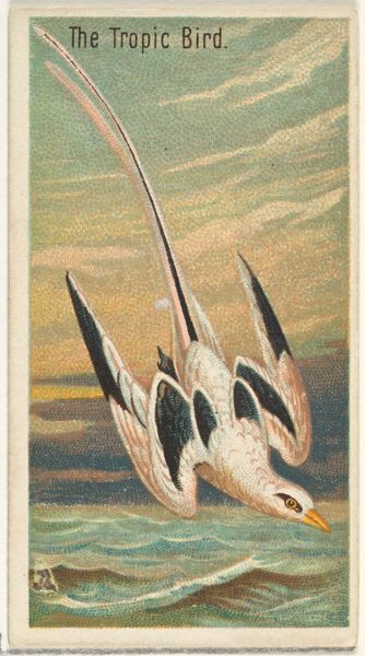 Editor: Here we have *The Tropic Bird*, from the *Birds of the Tropics* series, created in 1889 by Allen & Ginter. It's a drawing and print, rendered in watercolor. The composition is divided into two scenes, and has an ethereal quality. What catches your eye when you look at it? Curator: This piece offers a glimpse into the world of commercial art and its complex relationship with cultural representation in the late 19th century. Cigarette cards like this weren't just advertisements; they circulated images and ideas, shaping public perceptions. We can analyze how they tapped into the era's fascination with exotic locales, playing with notions of tropical paradise to sell tobacco. Notice how the style borrows from Impressionism and Orientalism. Editor: That's interesting...so the image is less about ornithological accuracy, and more about creating an aspirational lifestyle associated with the brand? Curator: Precisely. How do the boats factor in? What do they evoke in you? Editor: They hint at leisurely travel, maybe wealth and exploration? The association between travel and purchasing habits feels like it is alive and well today. Curator: You've nailed it. And remember, these images weren’t consumed in isolation. They circulated within social networks, influencing taste and desire. By studying the production and consumption of such images, we gain insight into the cultural and economic forces at play during that time. Editor: That puts the artwork in a new perspective! Thinking about how an image works beyond just its aesthetic is helpful. Curator: Exactly! It is more about unraveling the social and cultural stories embedded within the image.